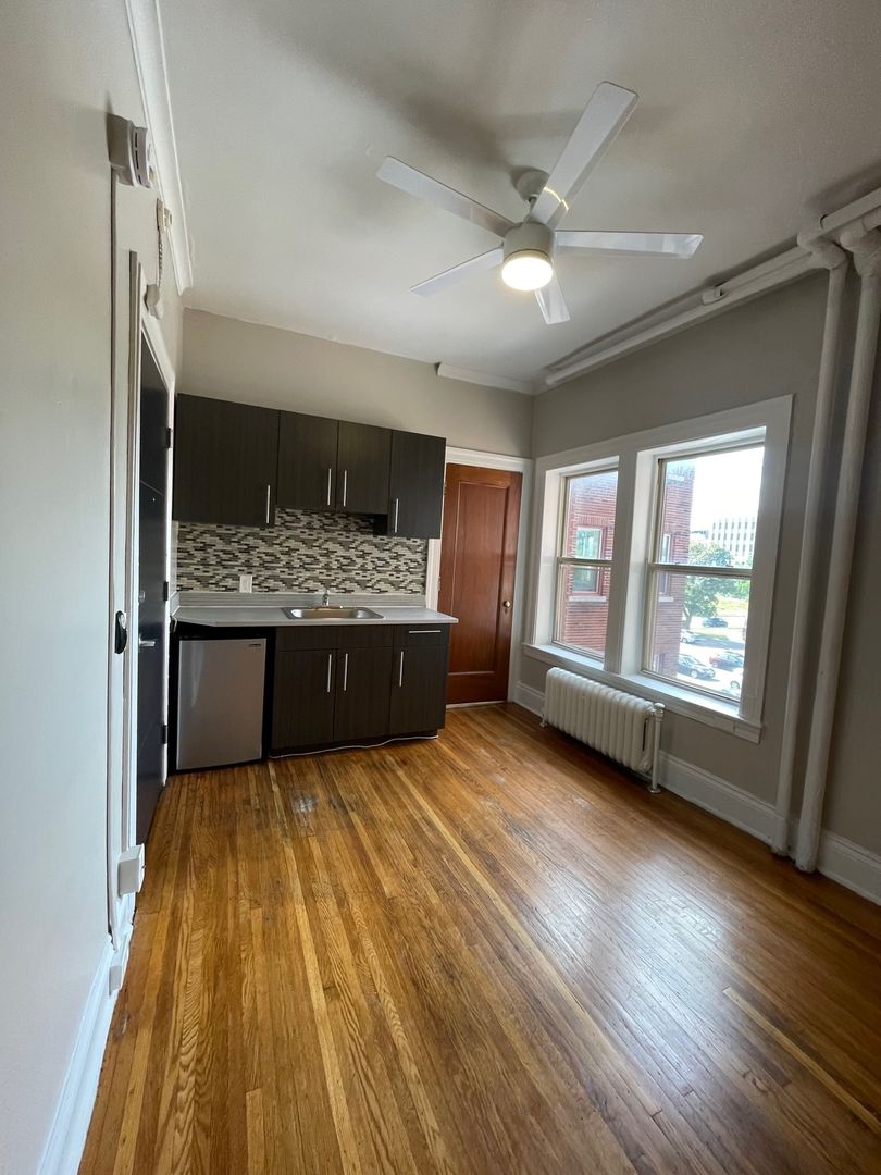 Make yourself at home in your newly updated historic downtown apartment! Hardwood flooring, modern kitchen cabinets and countertop, stainless steel mini fridge, new light fixtures throughout, high ceilings, and so much more!