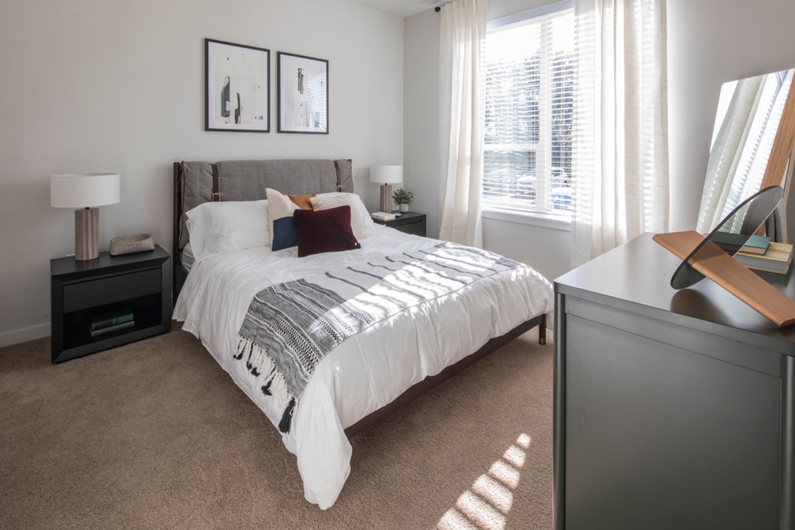 Make yourself at home in this beautiful & thoughtfully-designed apartment with over 1,200 square feet of modern luxury. This unit features 2 carpeted bedrooms, 2 modern bathrooms, an in-unit washer & dryer, breakfast bar, in-wall USB ports, stainless steel appliances, quartz countertops & more!